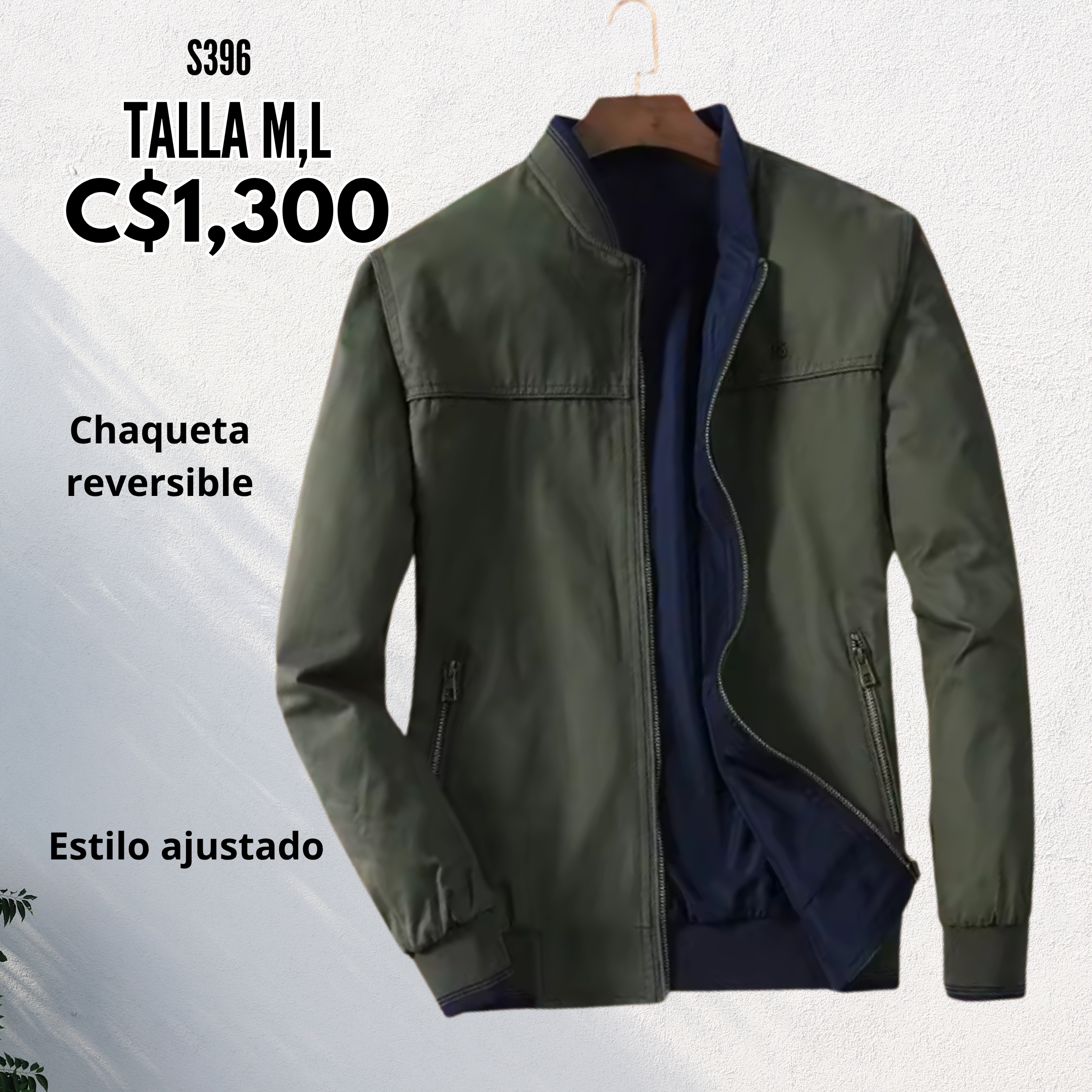 Chaqueta doble color cuello liso verde