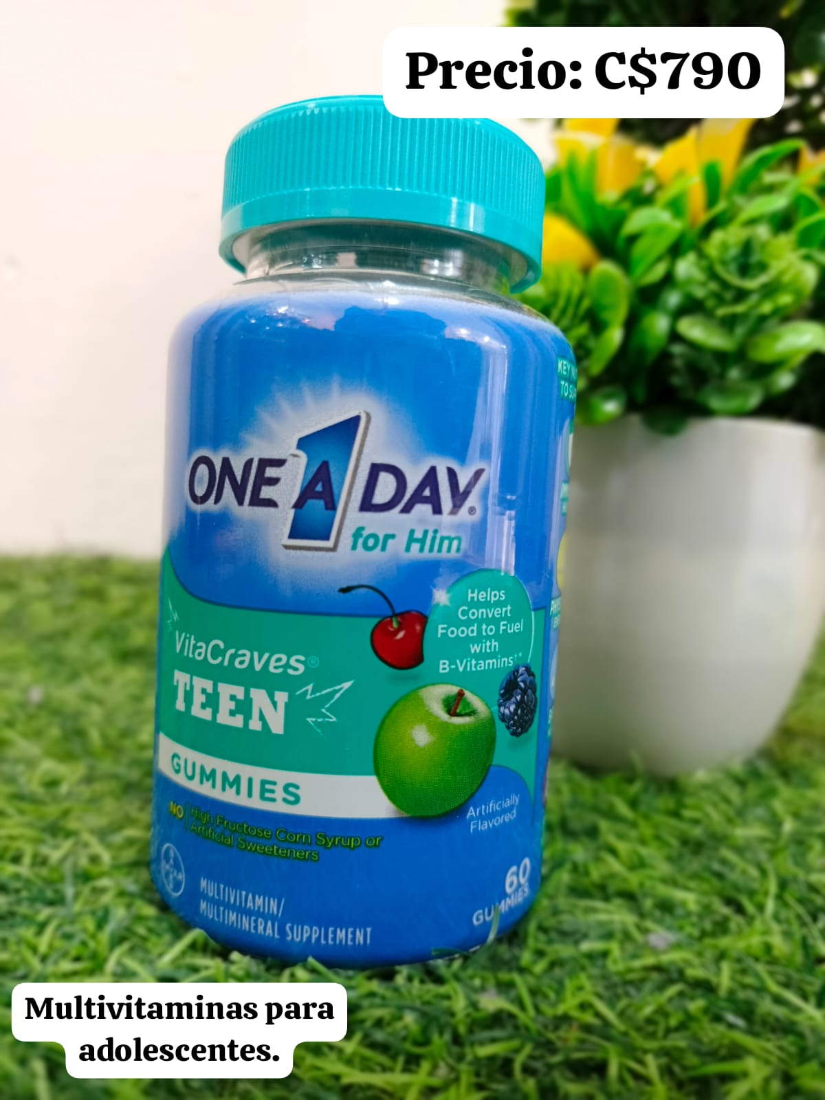 One A Day For Him – Multivitamínico para Adolescentes Apoya el crecimiento y desarrollo de tu hijo con One A Day For Him, el multivitamínico especialmente formulado para las necesidades de los adolescentes. Cada tableta aporta las vitaminas y minerales esenciales para mantener su energía, concentración y sistema inmunológico en óptimas condiciones. Beneficios clave: Apoya el crecimiento físico y desarrollo muscular Refuerza el sistema inmunológico Mejora el enfoque y rendimiento escolar Con vitaminas A, C, D, E y complejo B Ideal para chicos activos entre 12 y 18 años. Una tableta al día para estar siempre al 100%.
